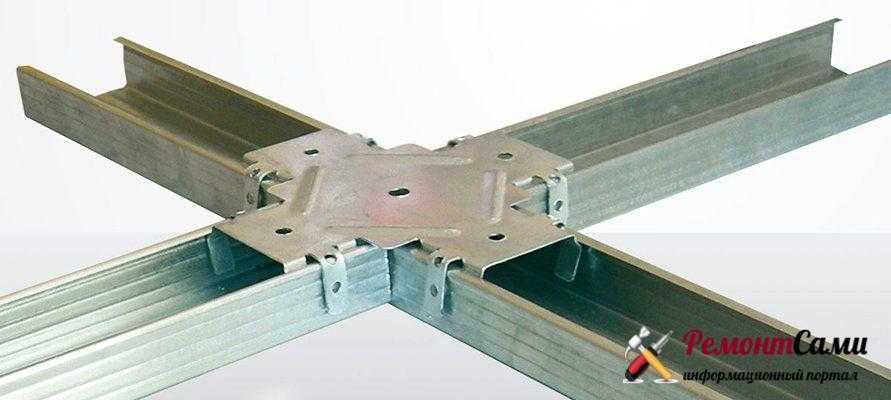 Готовый профиль-перемычку вставляют в крабы на двух основных профилях, защелкивают лапками и фиксируют саморезами через загнутые ранее усики.