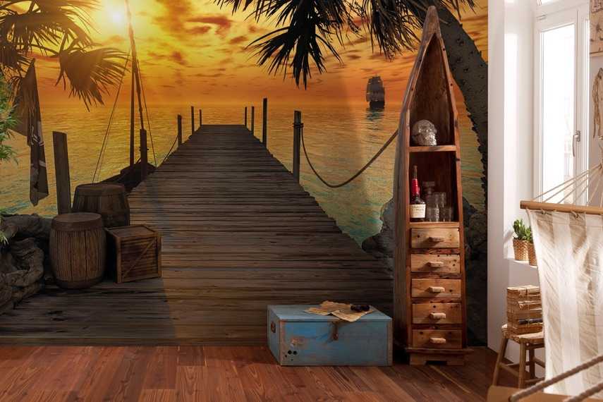 Морские сюжеты. Марины, корабли, изображения обитателей морских глубин, якоря и штурвалы – все это прекрасно действует на нервную систему детей, так что если ваш ребенок чересчур активен, то смело выбирайте морскую тематику в фотообоях для спальни для такого мальчика.