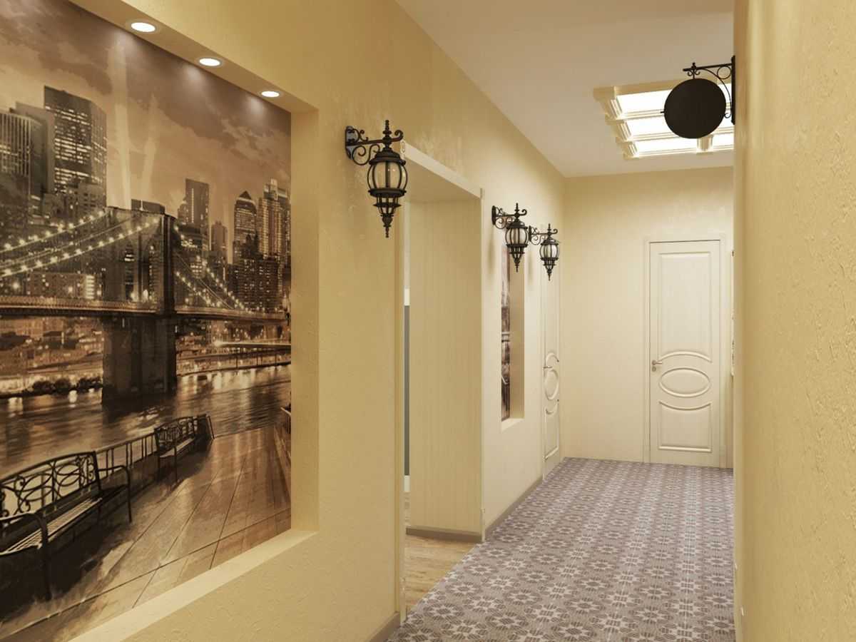 Современное стилистическое направление – идеальное для квартир или домов в мегаполисах. Потому, прихожую выгодно подчеркнут панорамные виды ночных городов и любые изображения современной тематики.