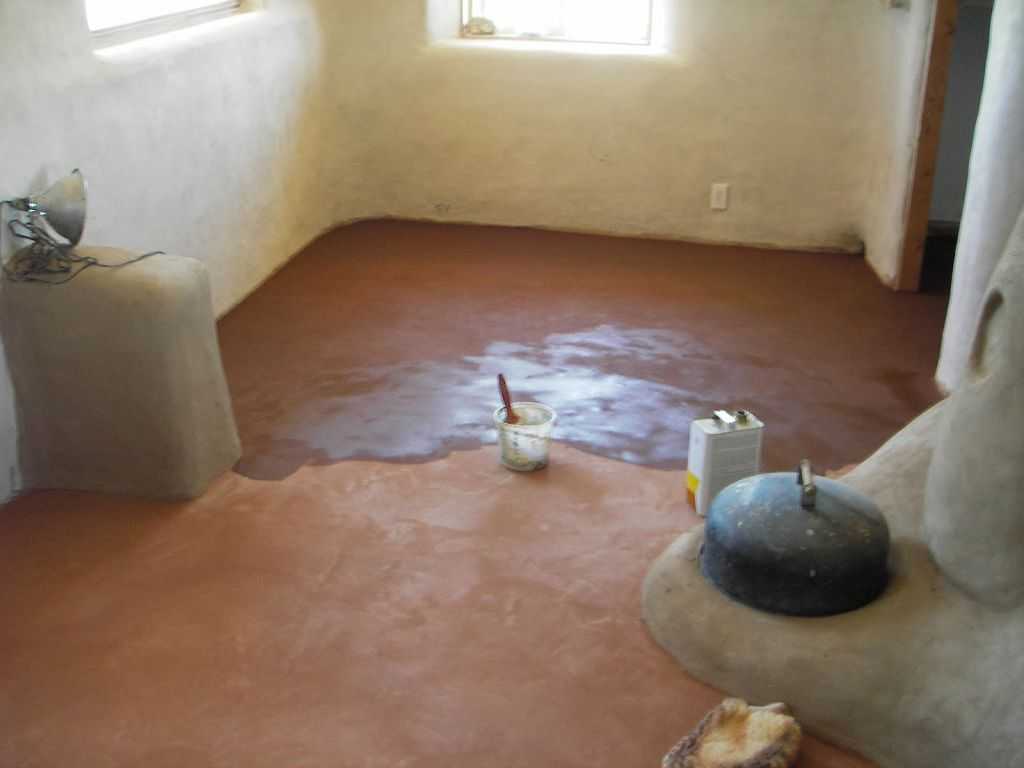 Для глиняных полов, выполненных по любой технологии, обычно применяется пропитка несколькими слоями масла и вощение воском. Такая обработка позволяет получить на полу плотный и твердый слой защиты, сравнимый по толщине с яичной скорлупой. В результате глиняный пол становится абсолютно водонепроницаемым, максимально прочным и долговечным.