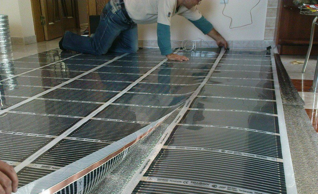 Подготовительные мероприятия практически не отличаются от варианта укладки пола на нагревательных матах. Однако нужно не забыть уложить теплоизоляционные материалы, а только сверху уже укладывать саму инфракрасную пленку листами параллельно, нельзя при этом класть их внахлест. Далее следует установить терморегулятор и проверить систему на работоспособность.