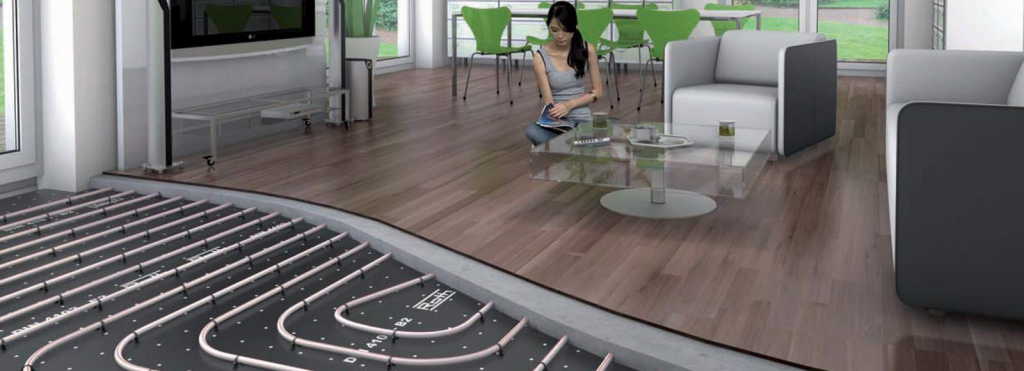 Сама конструкция трубопровода состоит и гибких труб из полимера. При установке она крепится в желобах панелей теплораспределения. Сами же тепло распределяющие панели легко режутся что при установке сыграет Вам на руку – ведь в этом случае их легко подогнать под самые сложные формы комнат – сейчас ведь в моде нестандартное проектирование квартир..