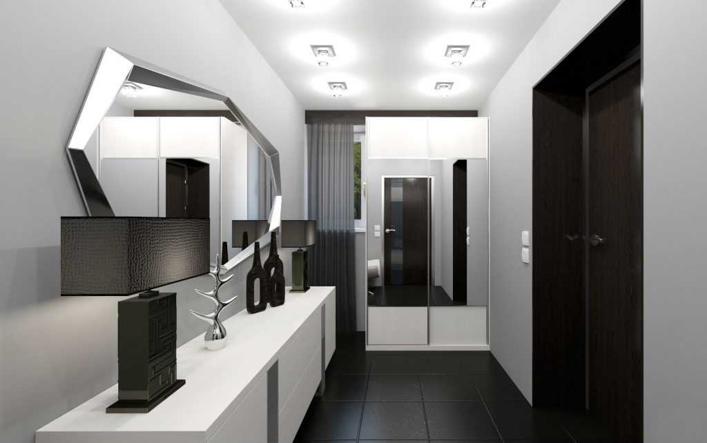 Вообще, узкие коридоры — это отдельный разговор. При помощи некоторых уловок можно добиться эффекта расширения пространства. Например, при достаточной высоте потолков, в узком коридоре примерно посередине стены можно сделать полосу другого цвета. Этот прием позволяет «развалить» стены в стороны. Эффект увеличивается, если на противоположной стене есть большое зеркало или зеркальные дверцы шкафа.
