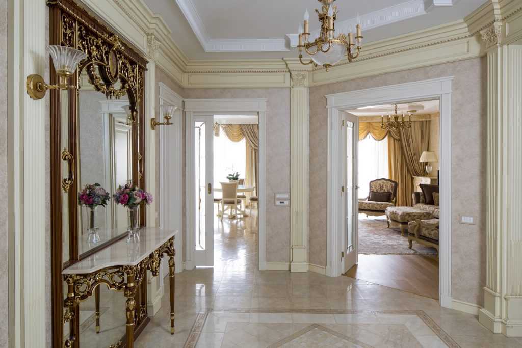 Классицизм и модерн. Им присущи более натуральные тона: коричневые, песочные и белые. Прихожие в классическом стиле белого цвета – универсальный вариант.