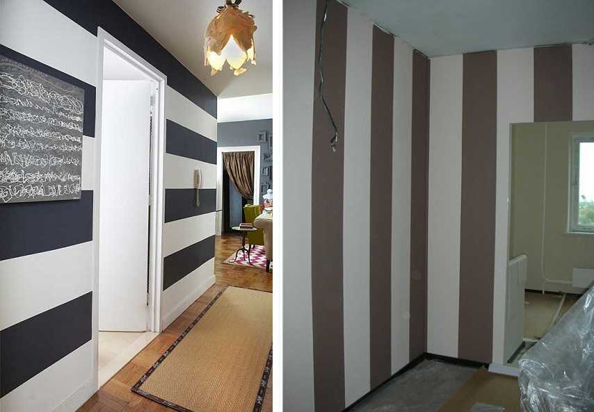 Контрастные вертикальные полосы смотрятся достаточно хорошо и без дополнительного декора. Они усиливают впечатление большого объёма в маленьких комнатах.