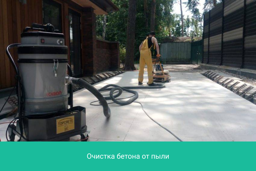После полного высыхания грунтовки очищаем бетонную поверхность от пыли при помощи строительного пылесоса или влажной тряпки.