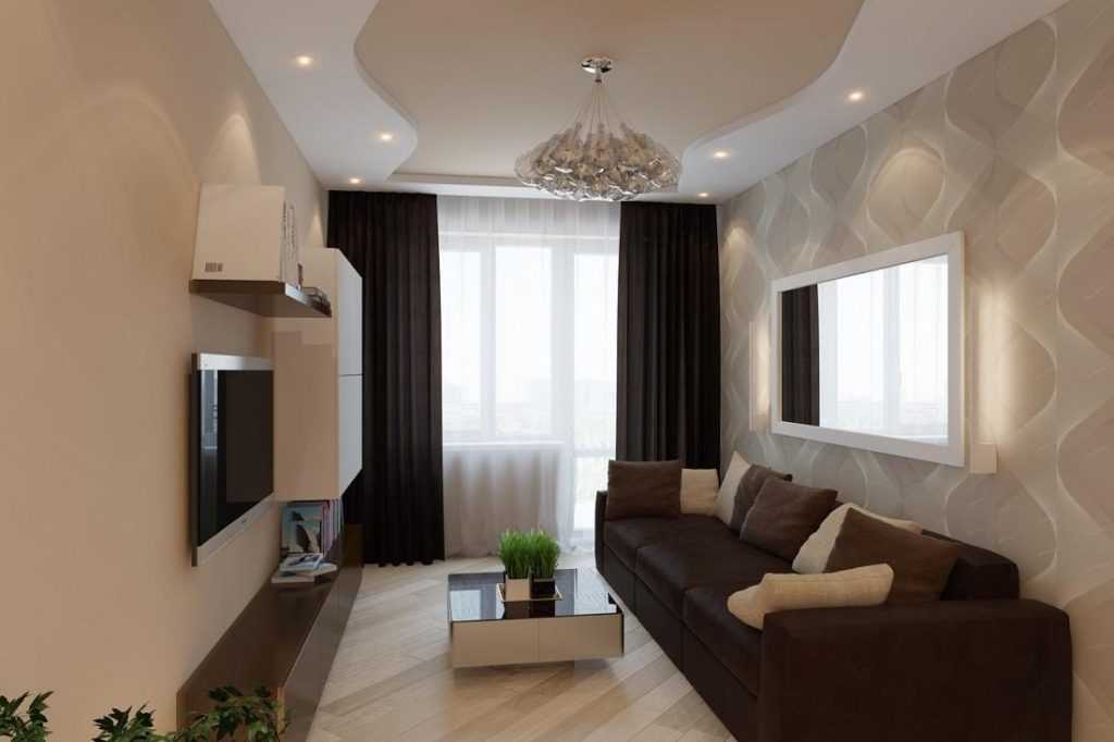 При оформлении тесной гостиной необходимо уделить внимание фактуре обоев. Гладкая глянцевая структура полотен отражает свет, создаёт видимость простора