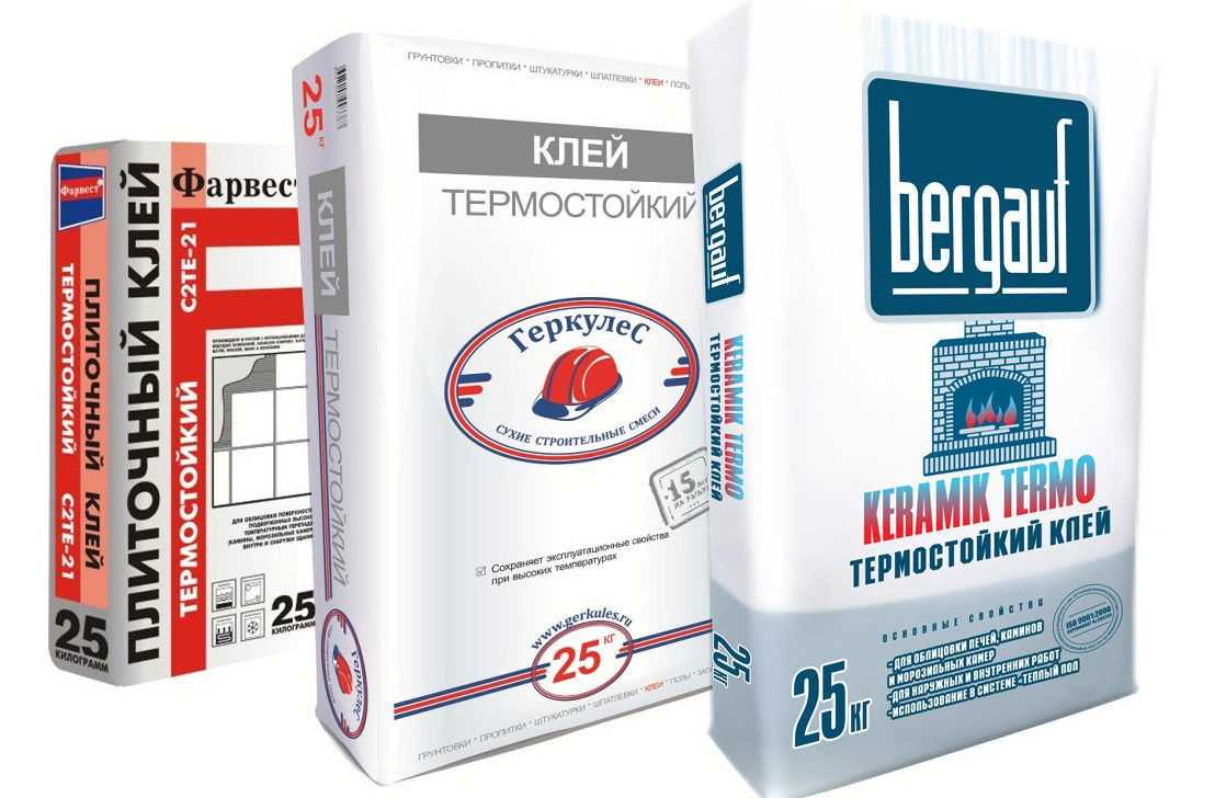 Термостойкий клей отличается эластичностью и огнеупорностью. Он используется для отделки печей и каминов, поскольку выдерживает температуру до 1200 °С. Жаропрочность обеспечивает каолин, входящий в состав смеси.