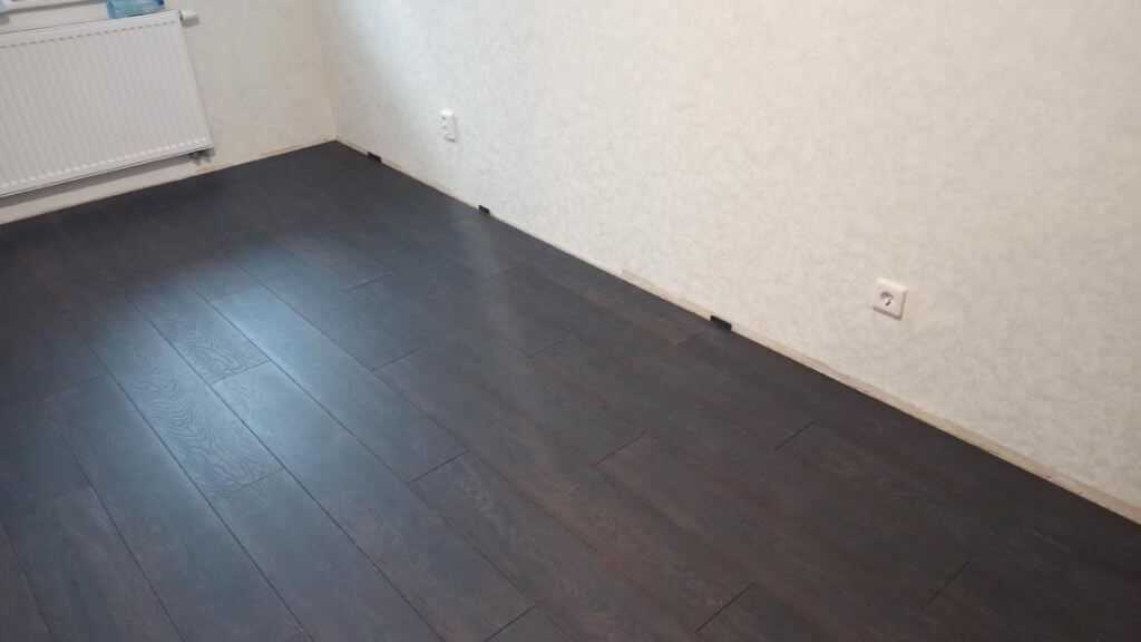 - Иногда заказчики жаловались, что ламинат черного цвета разошелся. Обычно, при осмотре, оказывалось что мастера просто не забили планку ламината в предыдущий ряд. По своей работе замечал, некоторые марки ламината с фаской темного цвета при малом освещении не всегда видно, до конца вставил планку в замок или нет.