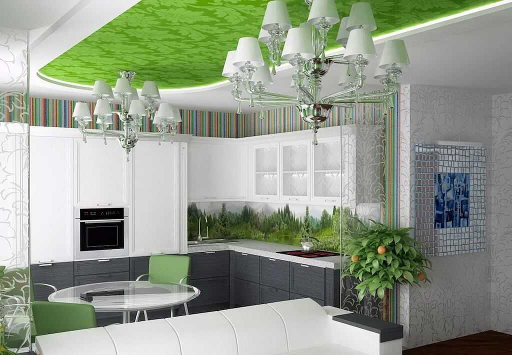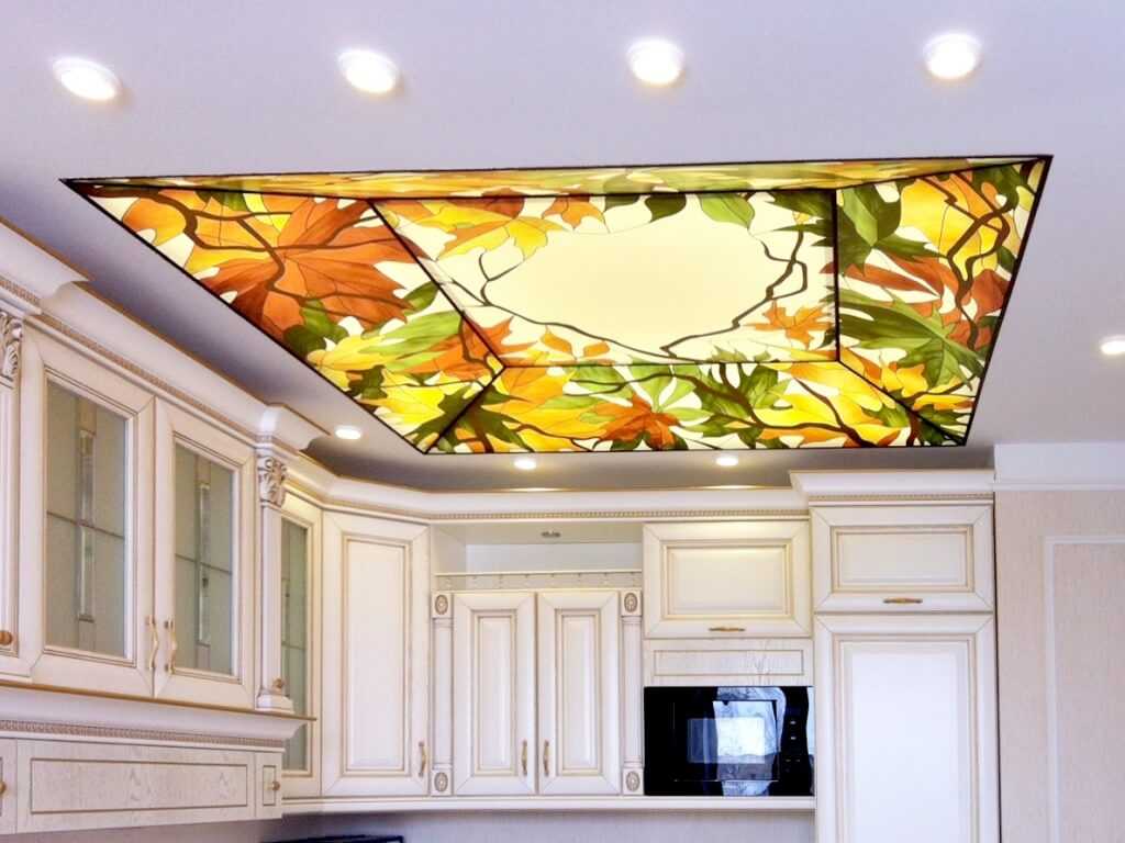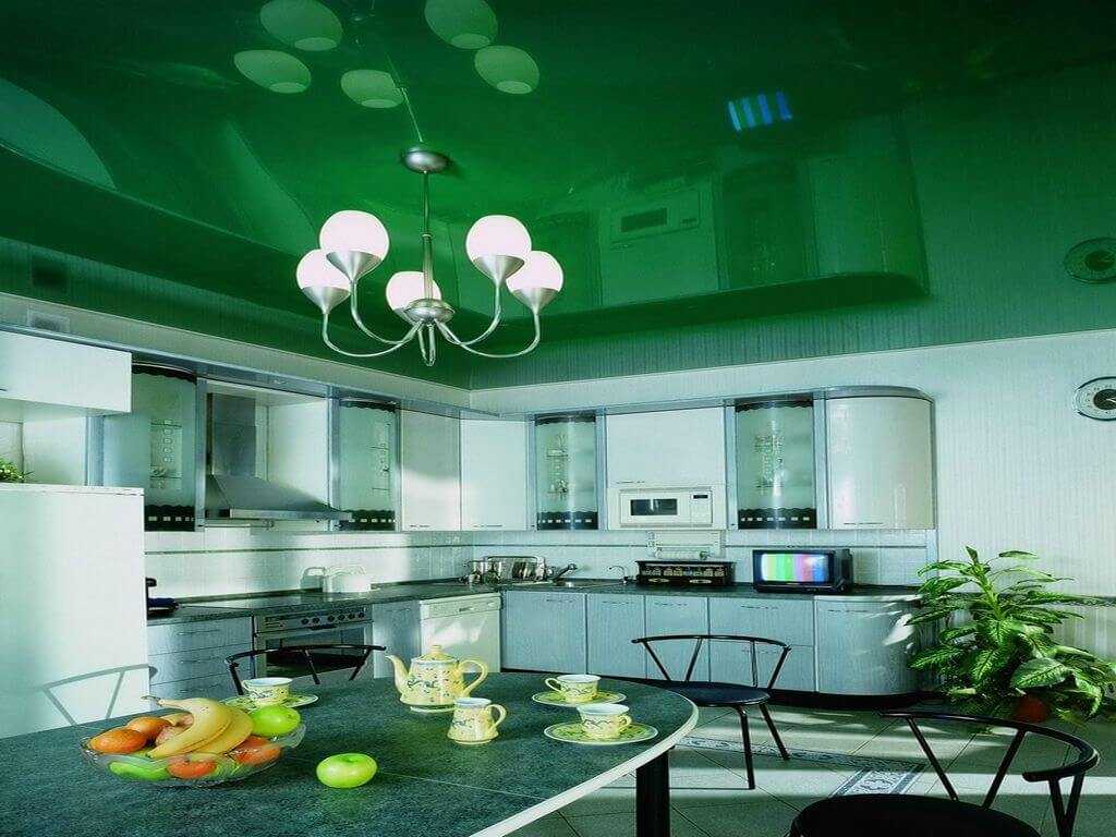 Выбирать потолок нужно такого цвета, который наиболее удачно впишется в вашу кухню, будет сочетаться с гарнитуром, стенами и полом.