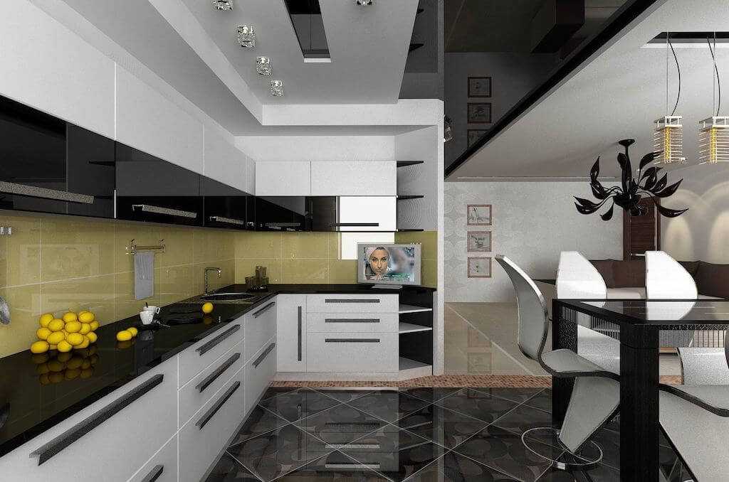 Глянцевый потолок в маленькой кухне – возможность визуально вытянуть пространство