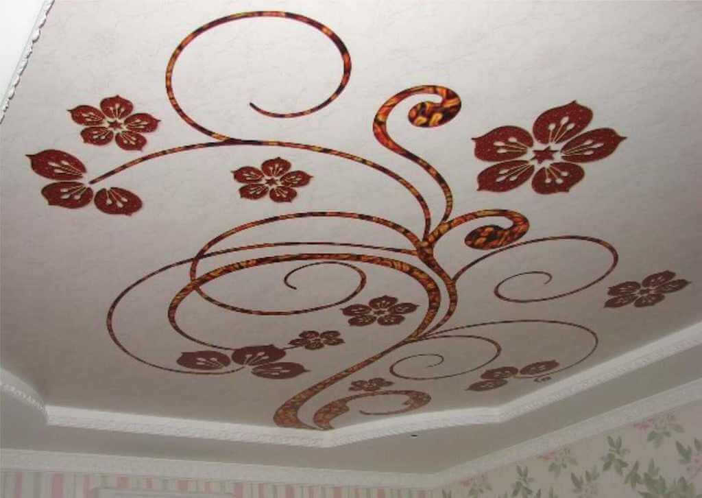 - Художественные потолки принято оформлять изображениями верхней сферы: звездное небо, облака, птицы и тому подобное в том же духе. Но этим выбор не ограничивается – по желанию можно нанести любой рисунок, выбрав из весьма обширного ассортимента или же придумать свой;