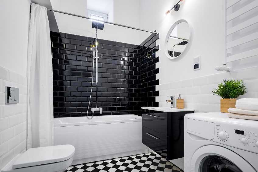 Такой цвет визуально уменьшает площадь помещения и способен вызывать неприятные эмоции. Если в ванной нет окон, темные тона усилят ощущение замкнутого пространства. На такой плитке сильно видны загрязнения – пятна от воды или моющих средств.