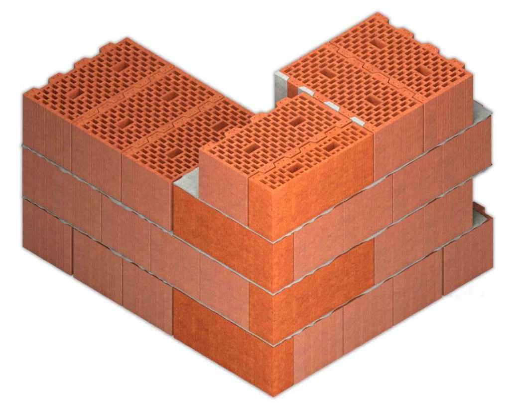 Укладка керамического кирпича производится на постель (плашмя) горизонтальными рядами. В исключительных случаях – на ложок (ребро). В процессе работ обязательно выполняется перевязка продольных, поперечных и вертикальных швов, чтобы обеспечить монолитность конструкции и равномерное распределение воздействующих на нее нагрузок.