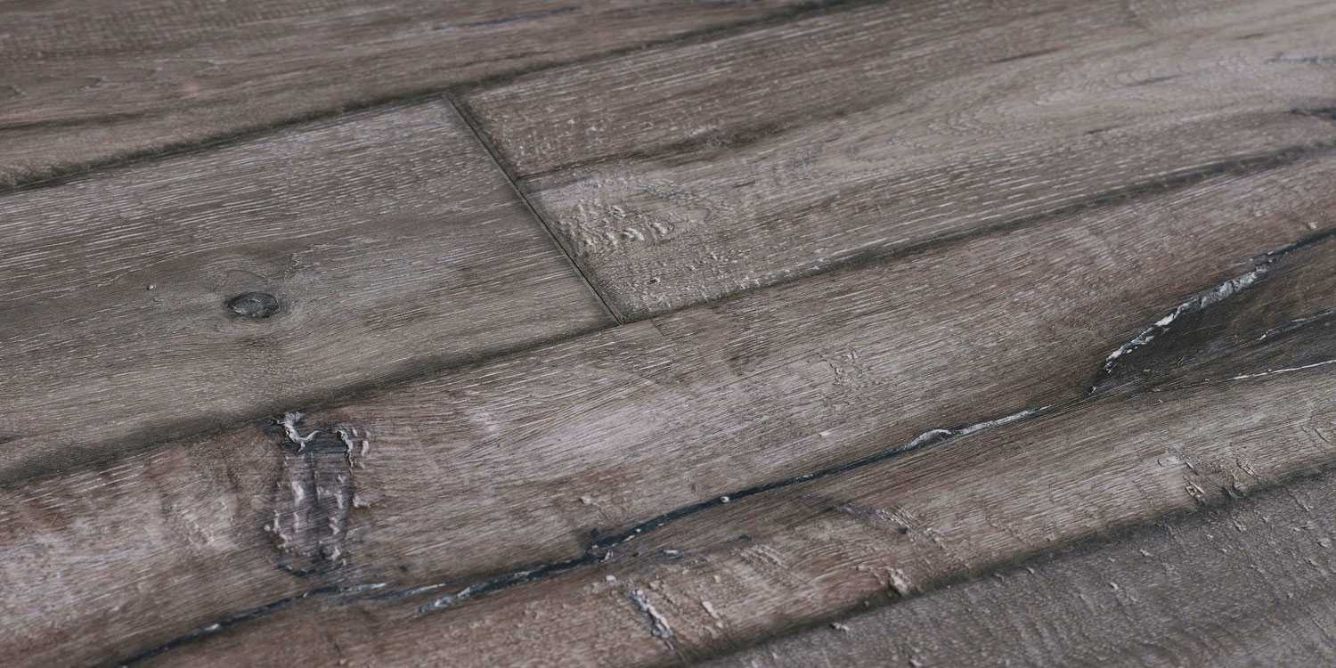 Не менее интересно смотрится и ламинат, имитирующий состаренное дерево. Доски обрабатывают особым образом, чтобы получить эффект ретро-паркета. Трещины, потертости и декоративные сколы выглядят на удивление уютно. Такой ламинат хорошо подойдет для интерьеров кантри, классика, шале.