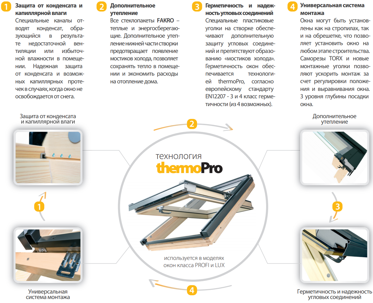 В сравнении со стандартными окнами в фасадных стенах, аналоги для мансардных крыш должны иметь лучшую гидроизоляцию и прочность. На встроенные в скат оконные системы действуют большие нагрузки от ветра и осадков.
