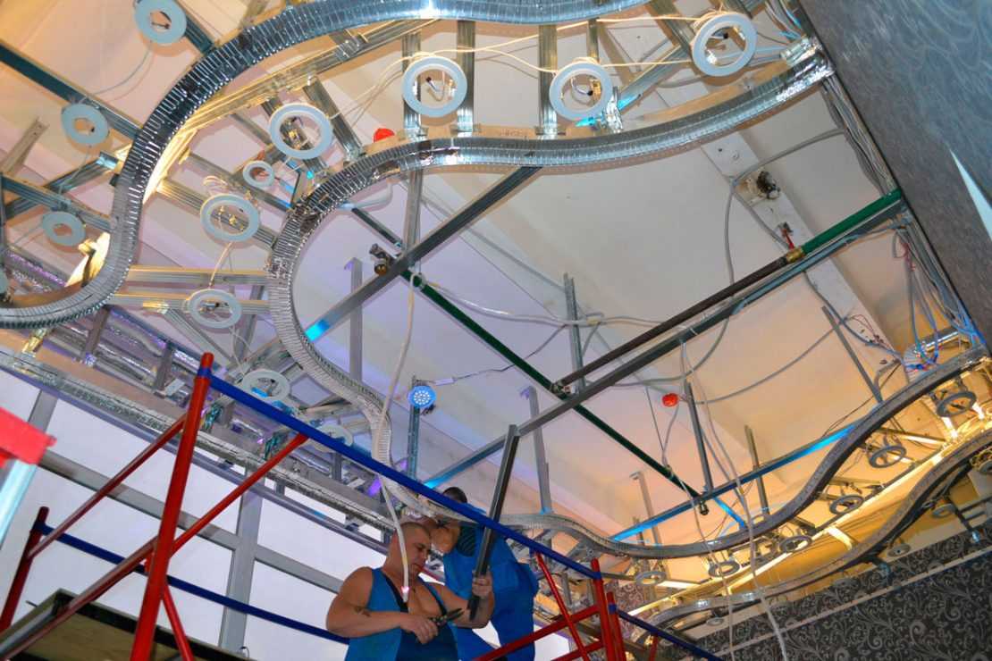 Как делают натяжные многоуровневые потолки: инструменты и материалы
