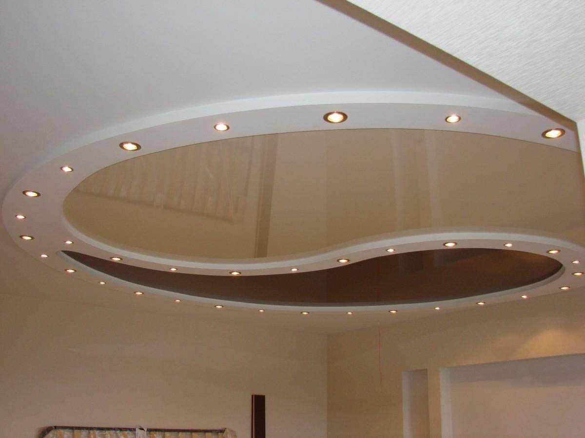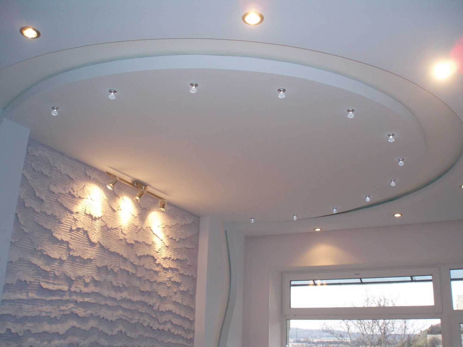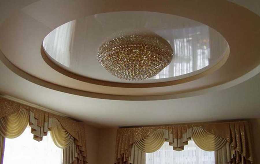 - Существуют круглые потолки, которые подойдут практически к любому стилю интерьера, а также овальные, спиральные и в виде разнообразных фигур.