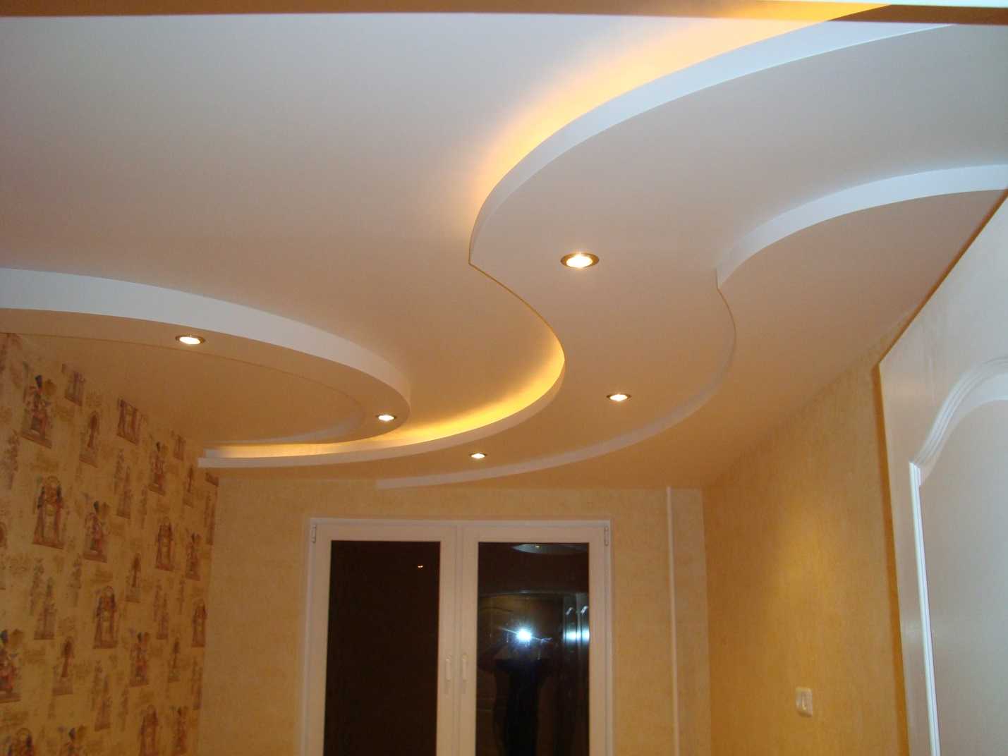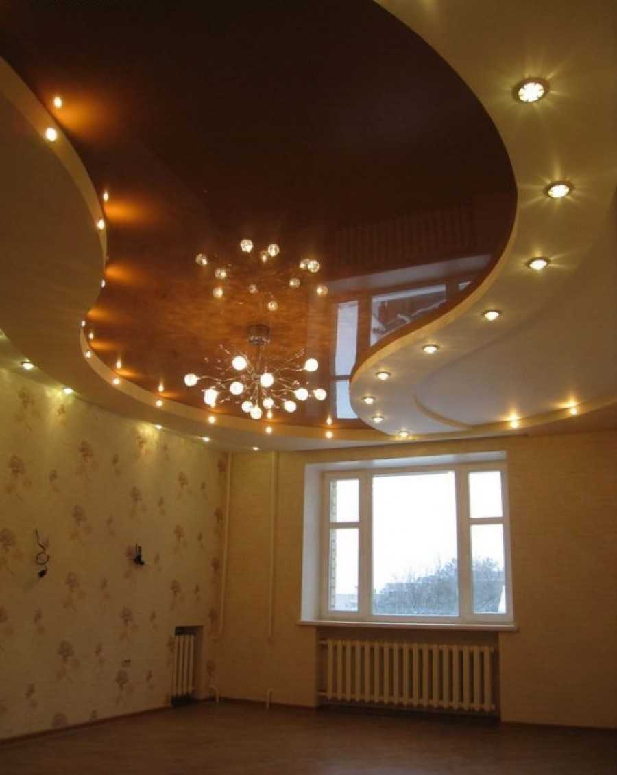 Потолки могут быть одноярусными, двухъярусными, трёхъярусными и так далее. Насколько хватит фантазии вам или вашему дизайнеру. Существует одна основная рекомендация: проектировать больше двух ярусов желательно только для помещения с высокими потолками, к примеру, загородного дома. Потолки могут быть прямыми или состоять из многочисленных кривых линий, иметь плавные переходы или резкие выступы.