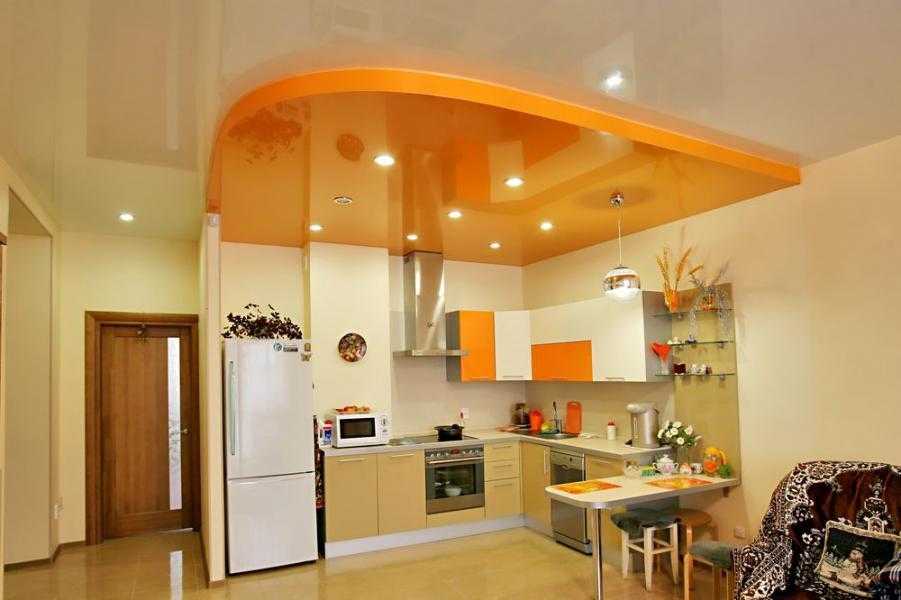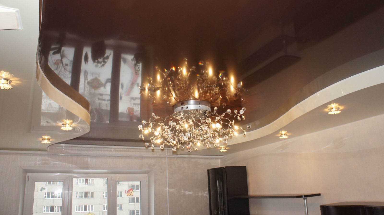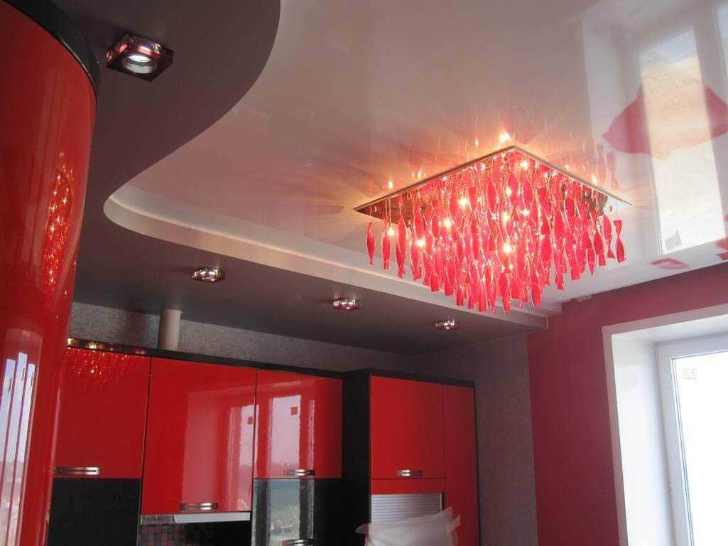 Глянцевое. Такая поверхность будет отражать свет, благодаря которому все помещение будет казаться гораздо просторней и светлее. Глянцевые потолки подходят для маленьких, тесных кухонь в малогабаритных квартирах, особенно если выбрать бежевый или молочно-белый оттенок. Для ухода за ними потребуется микро фибровая тряпка и средство для мытья стекол.