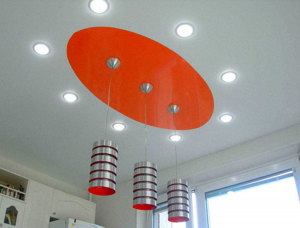 Немаловажным фактором является возможность разделения комнаты на функциональные зоны, благодаря использованию разных цветов полотен. Конструкция данных потолков позволяет создавать сложные сочетания из подвесных и встроенных светильников, задавать определённый свет для комнаты. Также при разных видах освещения, к примеру, точечном или ламповом, интерьер будет выглядеть по-разному.