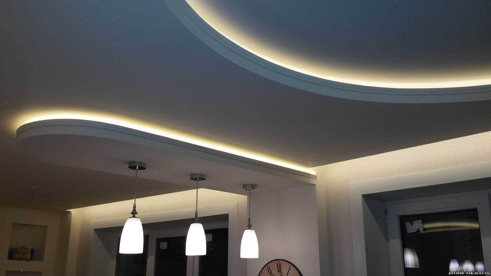 Если рассматривать двухуровневые потолки, то здесь используют 3 варианта: