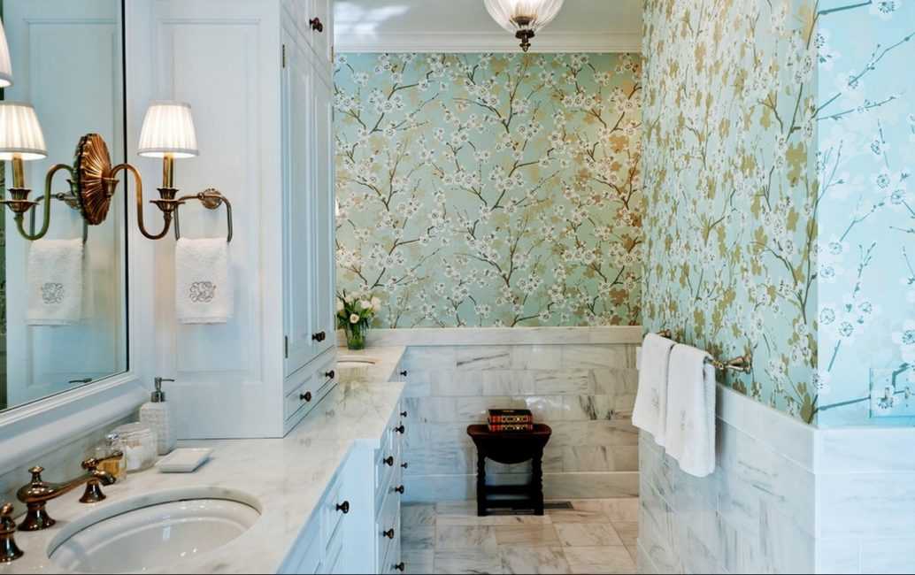 Обои комбинируют и с другими отделочными материалами: с краской, плиткой, вагонкой, штукатуркой