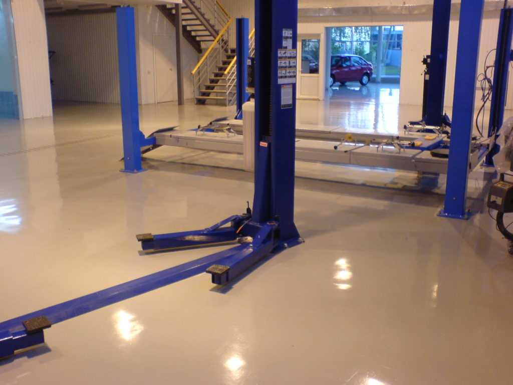 - Цементно-полиуретановые покрытия применяются в основном для создания полов с тяжелым режимом эксплуатации: высокой температурой, воздействием агрессивной химии и острым паром. Именно такой пол наиболее эффективно защищает бетонную основу от разрушений, ввиду чего их чаще всего заказывают для помещений автосервиса.