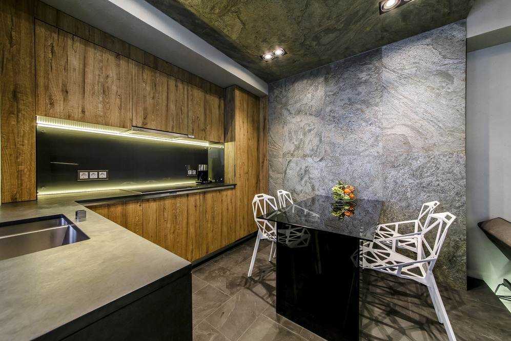 Отделка кухни плиткой под камень