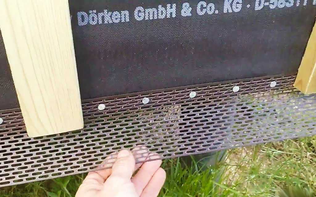 - Защита с помощью металлических сеток и листового метала с мелкими отверстиями. Лучше использовать нержавеющий метал, который не будет подвергаться коррозии. Сетку или полоски метала крепят снизу и сверху стены за ОСП листами, чтобы они не влияли на внешний вид дома.