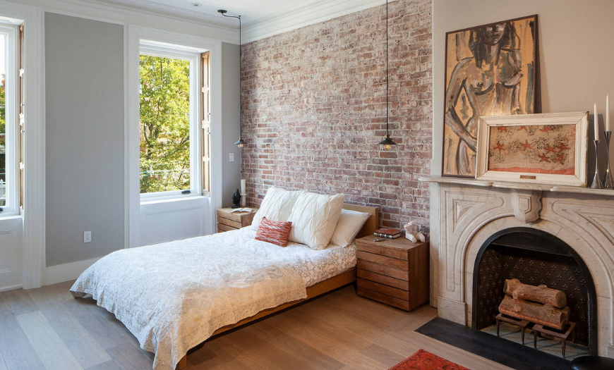 Студия, оформленная в стиле лофт, не обойдется без «кирпичной стены» из виниловых обоев на флизелиновой основе.