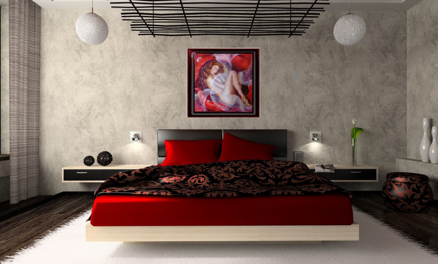 Выбирая 3Д-рисунок в спальню на стены, стоит учитывать расположение мебели, при сильной загруженности комнаты рисунок будет лишнем