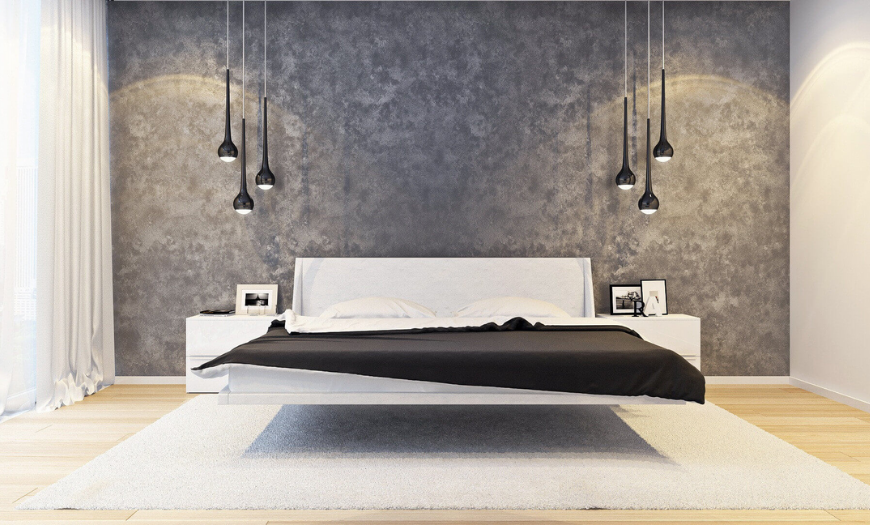 Интерьер спальни с обоями каждого представленного варианта достоин пристального рассмотрения, так как будет иметь и собственные преимущества, и некоторые недостатки.