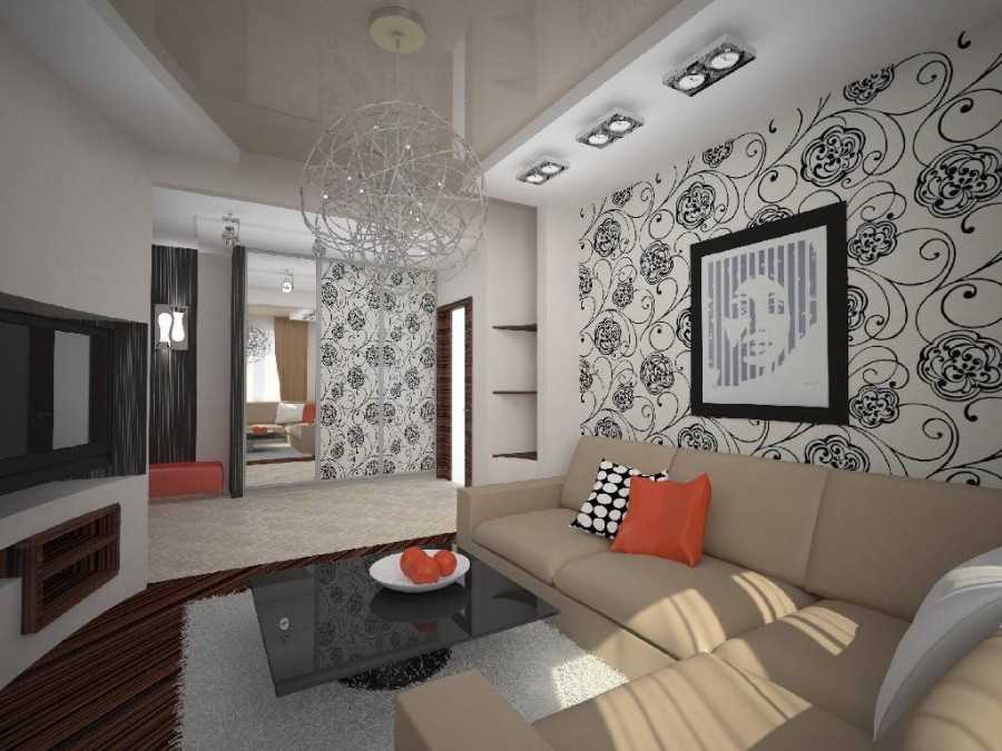 Современный. Отличается наличием ярких, четких рисунков и контрастных переходов цвета. Обои светлые в зал дизайн с комбинированным рисунком, фото которых можно посмотреть в любом источнике и выбрать наиболее подходящий для себя.
