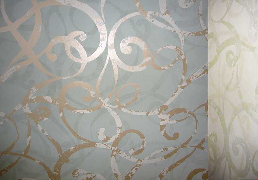 Общий рисунок объединит два полотна обоев компаньонов. Изображение может быть одинаковым, при этом иметь разный размер, например на одной поверхности узор с крупными вензелями, на другой они же, но меньшего размера.