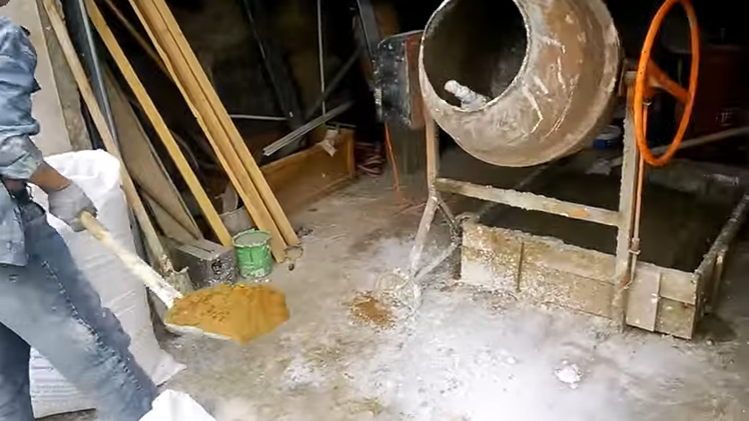 Шаг 4. Закиньте мокрый перлит в бетономешалку¸ если он прилипает к стенкам, то добавляйте воду.