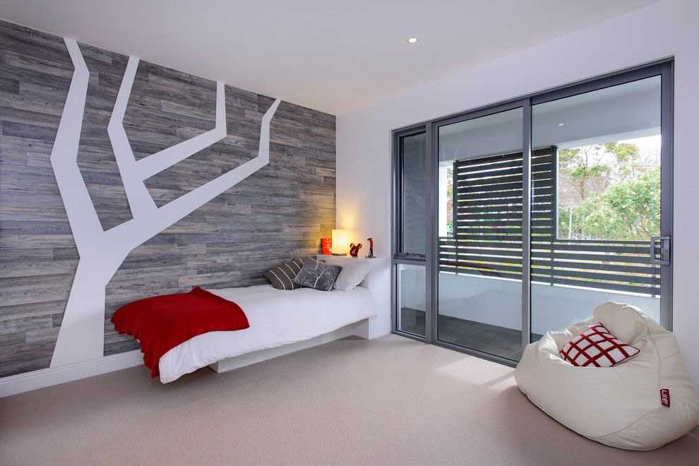 Наиболее оправданна укладка ламината на стену, часто подвергающуюся воздействию трением, случайными ударами, частыми прикосновениями – например, стена над изголовье кровати, прилегающая к лестнице.