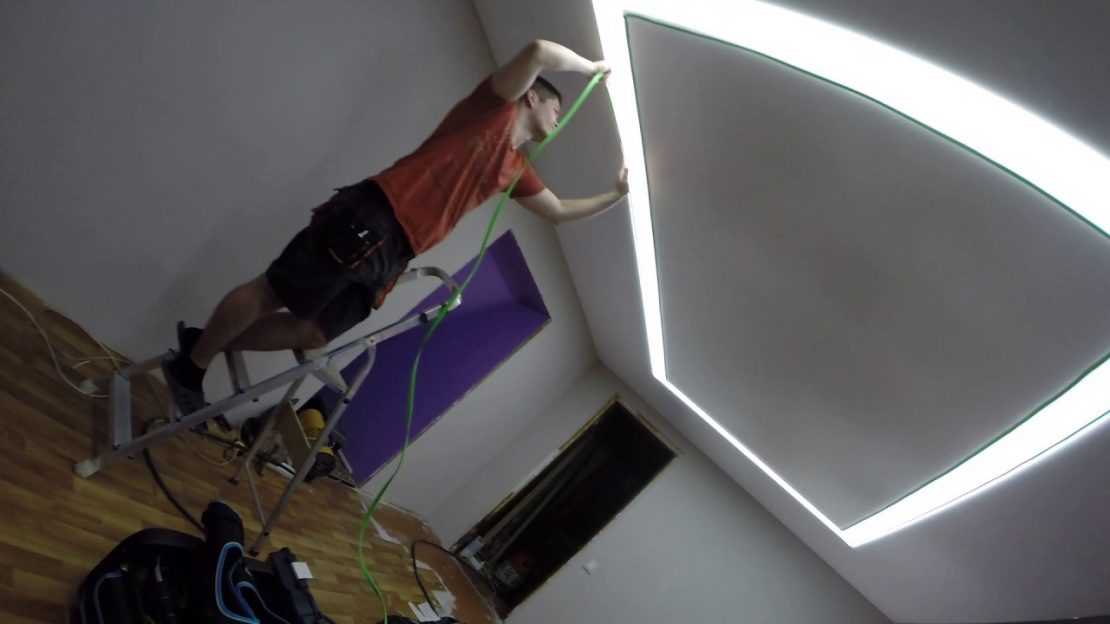 Когда полотно натянуто, переходят к монтажу освещения: