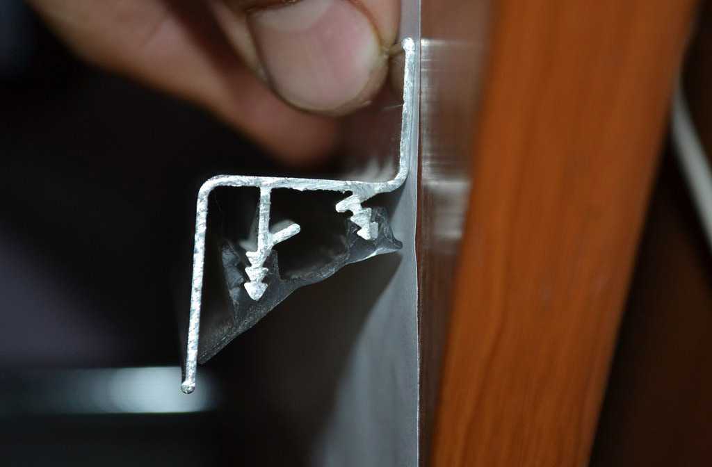 Для фиксации профиля на неровном основании или криволинейной поверхности лучше использовать элементы из ПВХ, которые хорошо гнутся по форме основания. Чем больше кривизна поверхности, тем чаще устанавливают саморезы. Чтобы согнуть алюминиевый профиль, на нем делают надрезы с равным шагом.
