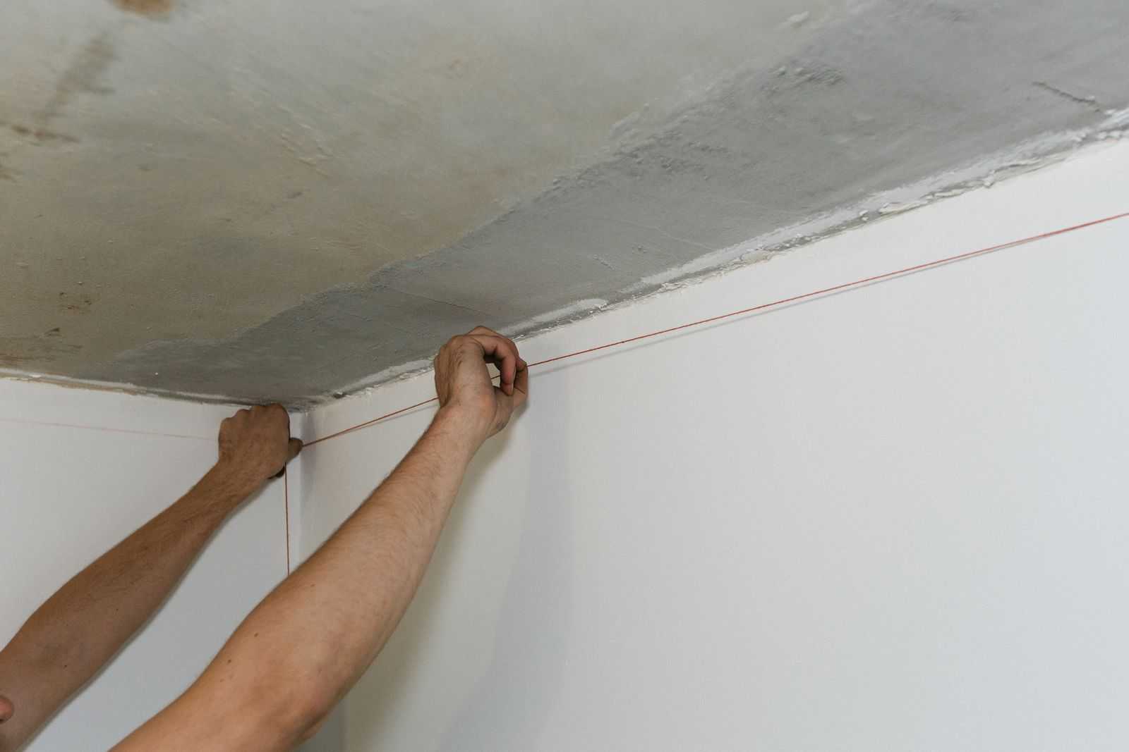 Перед началом работы готовят помещение. Мебель выносят в другую комнату или сдвигают к центру. С потолка снимают остатки старого покрытия, заделывают щели и грунтуют поверхность.