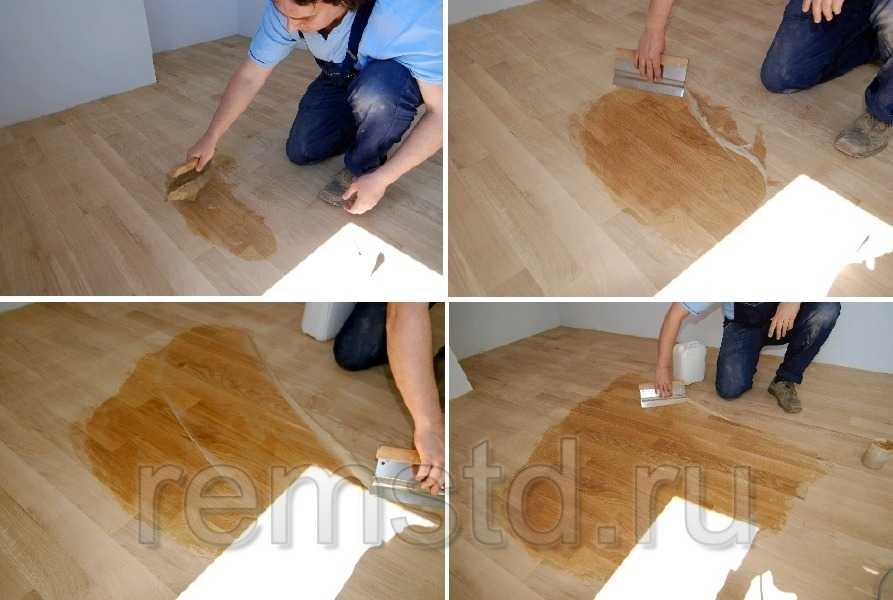 - Клеевой – используется в больших помещениях. Этот метод позволяет получить прочное и надежное покрытие. Данный способ трудоемкий, требует сосредоточенности и точного выполнения всех действий. К тому же, если вдруг потребуется заменить одну планку, то придется потратить на это довольно много времени, и вполне возможно, что надо будет заменить и соседние планки.