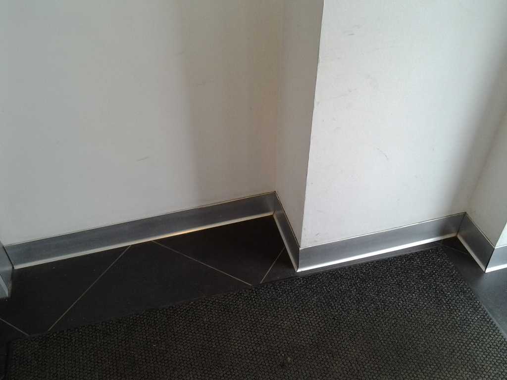 - Металлические (алюминиевые или стальные) по форме напоминают уголок. Материал дорогостоящий и не очень красивый. Его используют в офисах, магазинах и других общественных помещениях.