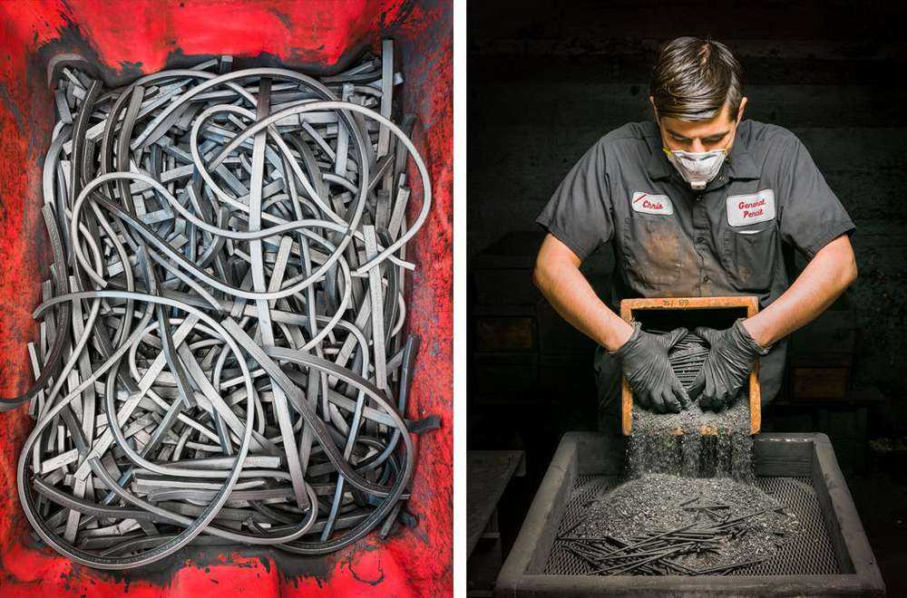 Сначала она отбирается, нужно прямые волокна без сучков. Отобранное сырье обрабатывается и становится брусками, они идут на торцевание по длине будущего карандаша. Бруски выходят чуть длиннее, так как при усушивании материал уменьшится в размере. Далее они распиливаются до тонкие дощечки и пропитываются парафином. Данная стадия повышает устойчивость к механическим повреждениям.