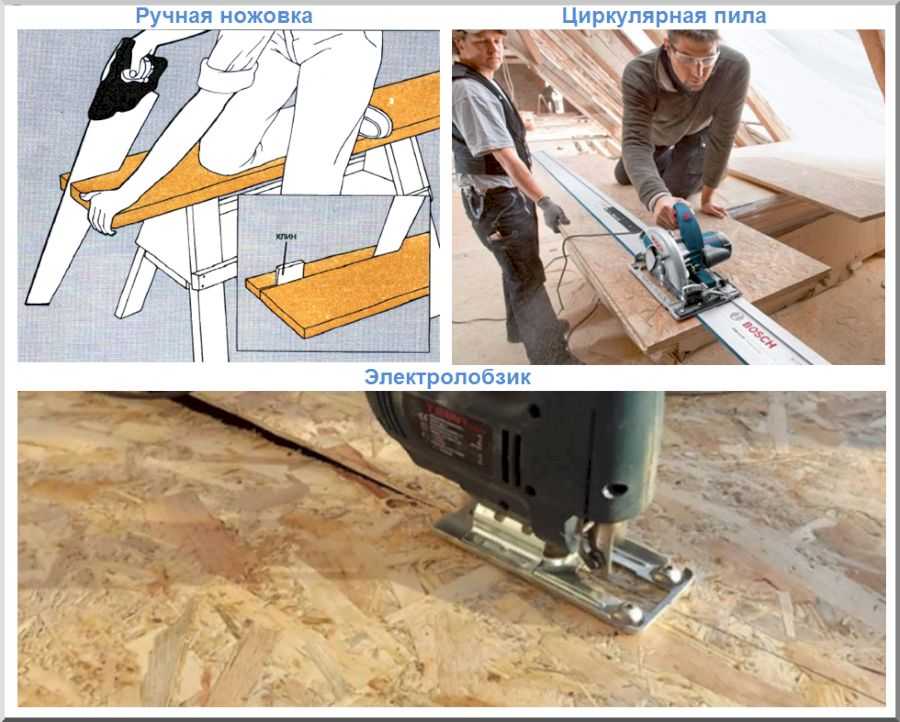 Пилить плиту ОСБ можно следующими приспособлениями:
