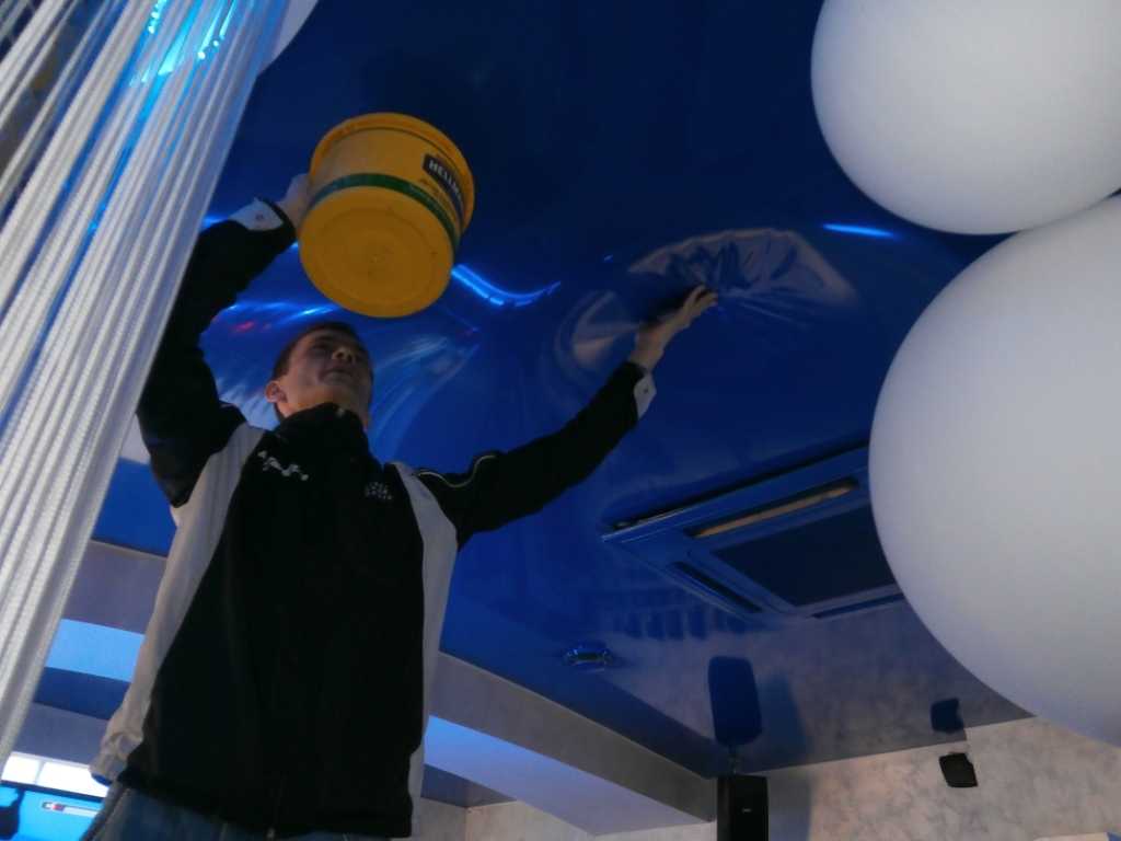 - Бояться, что полотно порвется. ПВХ-пленка для потолочных покрытий выдерживает вес 100 м3 на 1 м².