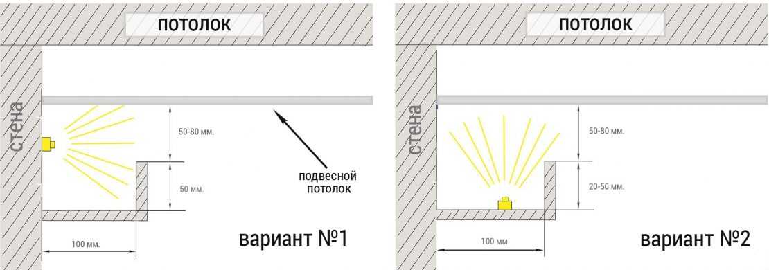 - Удаление колбы или излучающей поверхности от прозрачного натяжного потолка должно составлять не менее 20 см. С одной стороны, это обеспечивает предварительное рассеивание света за счет отражения от черновой поверхности, с другой стороны, блокируют эффект проецирования, например, как в случае использования цепочки светодиодов;