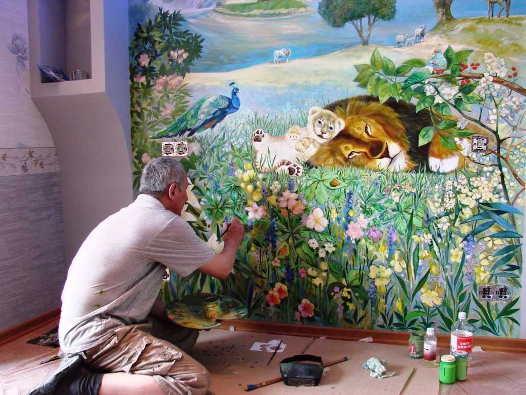 Многие люди считают препятствием неумение рисовать. Стоит отметить, что специальные знания живописи для разрисовывания стен не требуются. Наличие художественного таланта совсем не требуется, стараться походить на Ренуара или Малевича не нужно