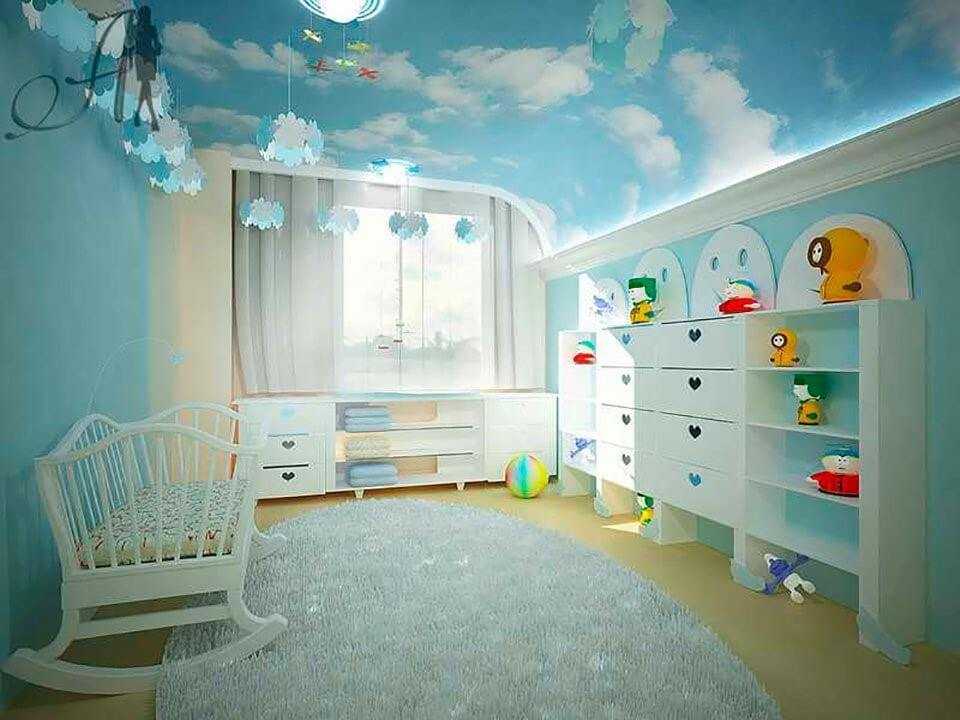 Поэтому, лучшим решением для детской будет тканевый потолок, либо матовая гиппоалергенная пленка.