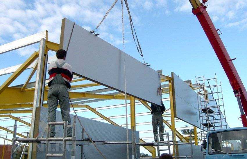 - Вес панелей. Монтаж панелей с наполнителем из минеральной ваты требует использования специальной техники, дополнительных рабочих, что повышает затраты на строительные работы.