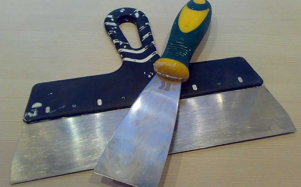 - Шпатель средней ширины с гибким лезвием для нанесения шпаклевки.